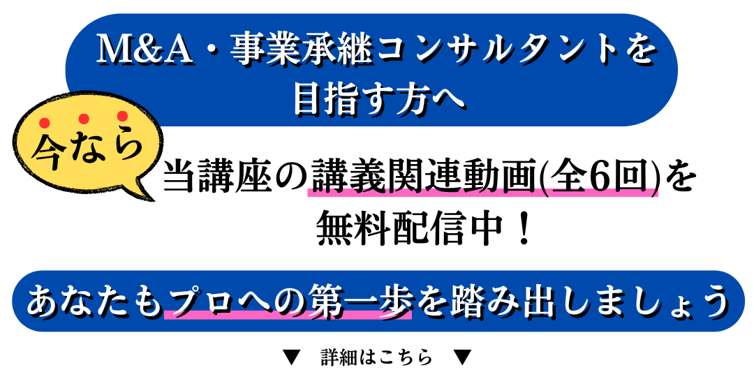 【1/3】M&A・事業承継コンサルタント育成講座 基礎編(無料):こちらは本講座を体験頂く為に無料で開催しています。