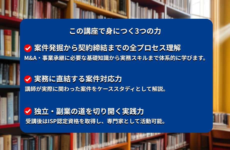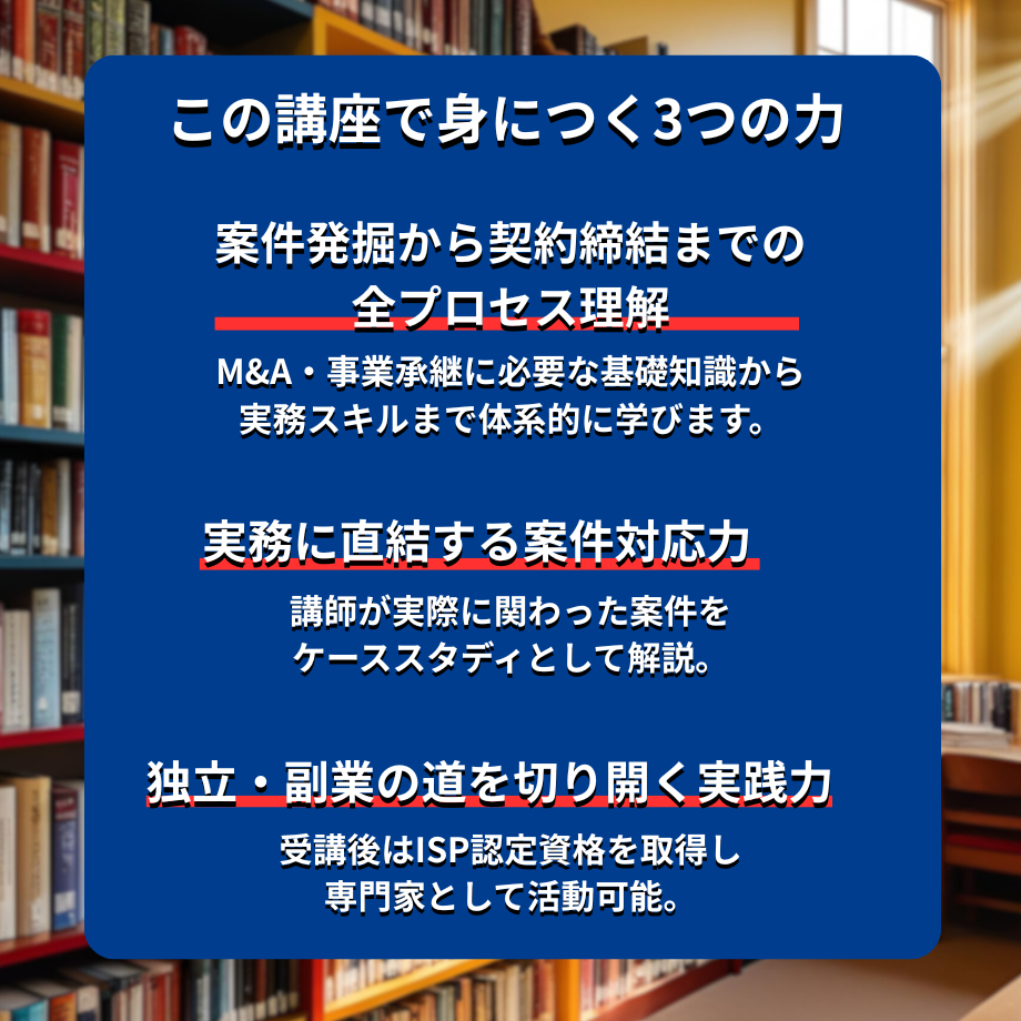 【卒業後】ISP認定:本講座を一定数ご受講頂いた方を【ISP認定M&A・事業承継コンサルタント】として認定致します。